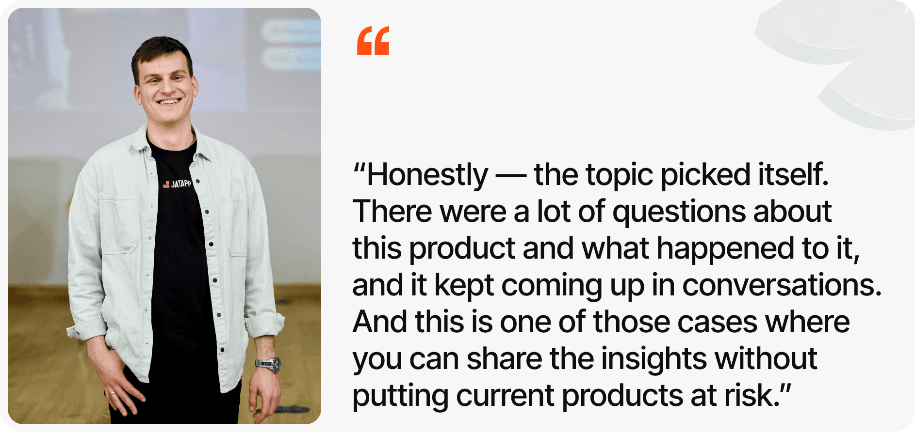 After the talks, we took questions from the audience — and there were plenty. People asked about specific cases, how to communicate a decision to stop a product to the team, and how to build kill criteria without turning them into a formality.