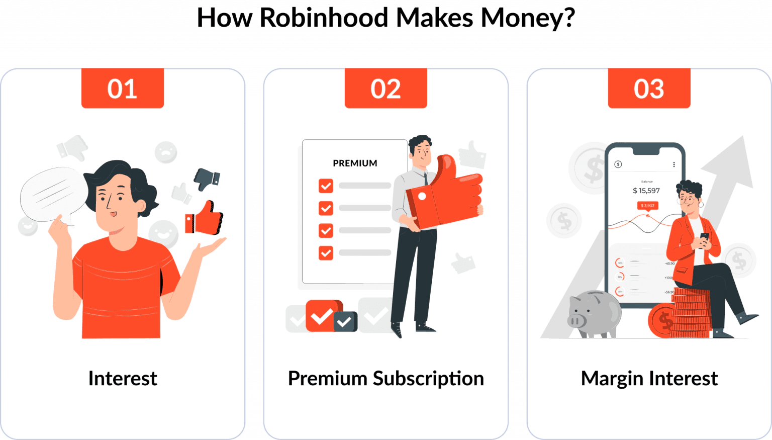 Bank interest. Since Robinhood creates a bank account for each user to store the money they use for trading, the app charges users for bank accounts and core banking services once in a year.