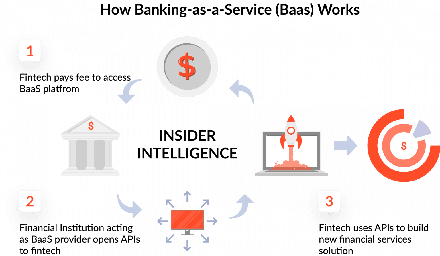 The last and our favorite option is banking-as-a-service (BaaS). You delegate all legal and infrastructural legwork to a BaaS provider, which is an incumbent bank or another fintech with a full banking license. A BaaS provider takes care of all regulations and integration of financial services into your app while you pay a fee from every transaction or make a fixed subscription payment.