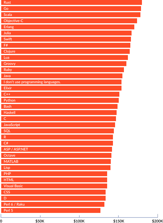 Developers’ salaries by programming languages