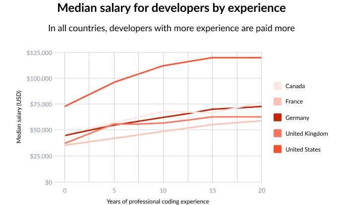 Median developers’ annual salaries by experience